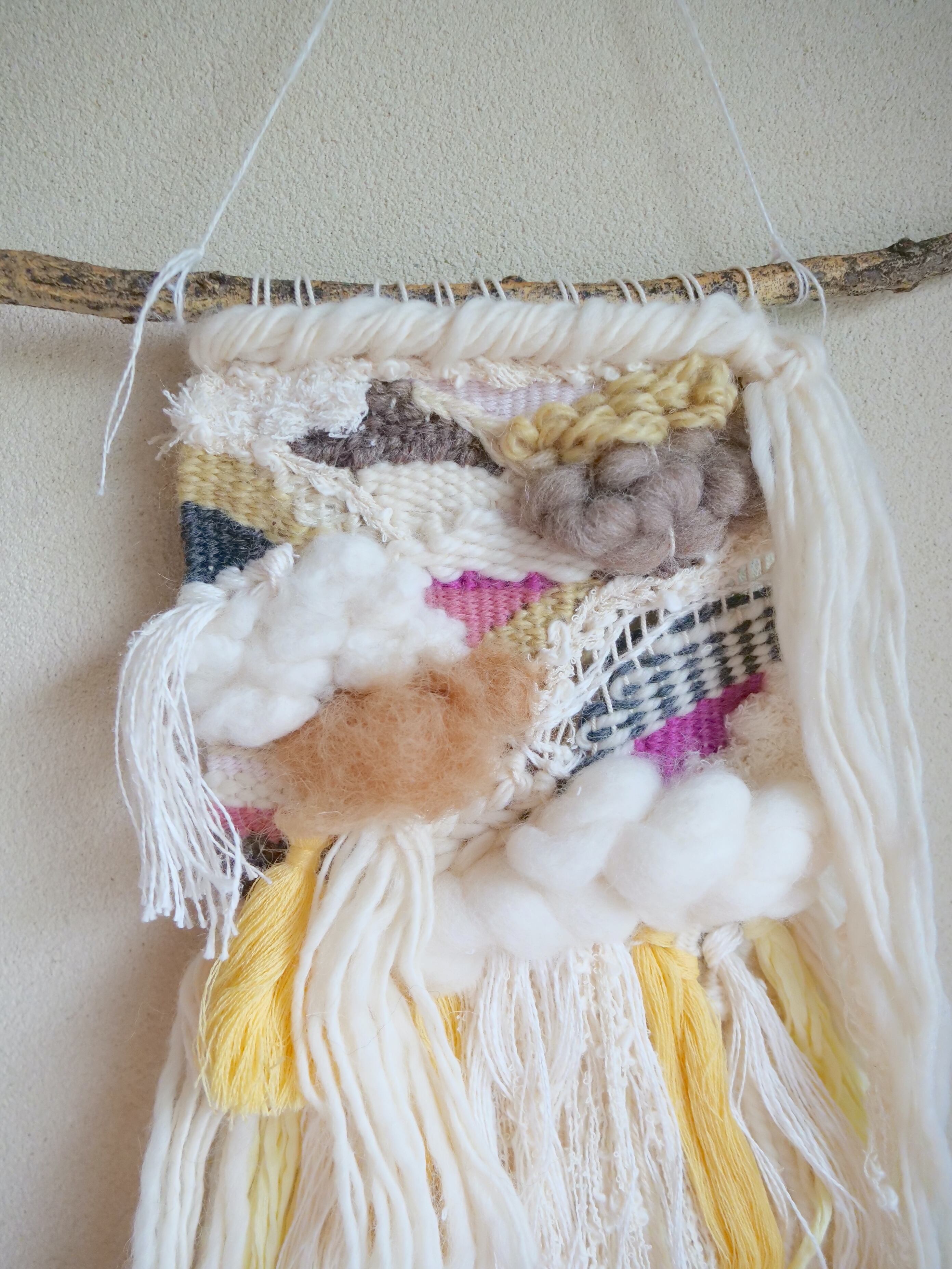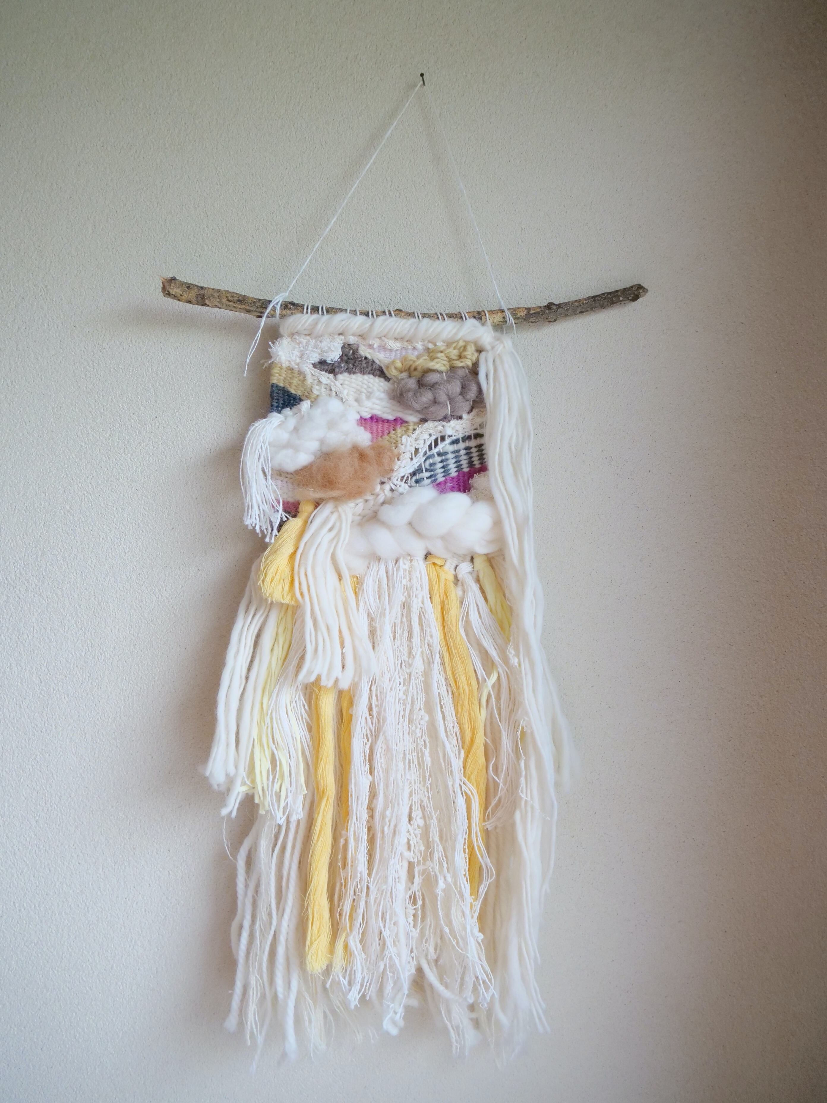 ※全て手作業で制作している一点ものです。自然素材の毛糸やコットン糸をメインに使用しています。枝も自然のものを使用しています。配送時に万が一折れてしまった場合は別の枝をお送りしますのでご連絡ください。
